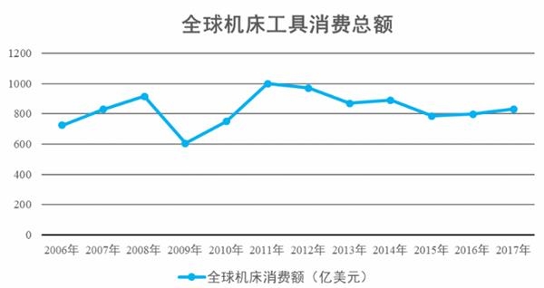 中商情報網(wǎng)訊:2006年至2011年,全球機(jī)床工具消費額總體保持增長態(tài)勢,自2011年至2015年整體呈下行趨勢。2017年全球機(jī)床工具消費值約為832億美元,較2016年度增長4.3%,這是自2011年以來最大漲幅。